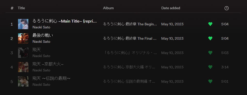 The last three tracks (from first three films of the series) are unavailable in my region, but this is how my ranking of "Hiten" soundtrack would stand.